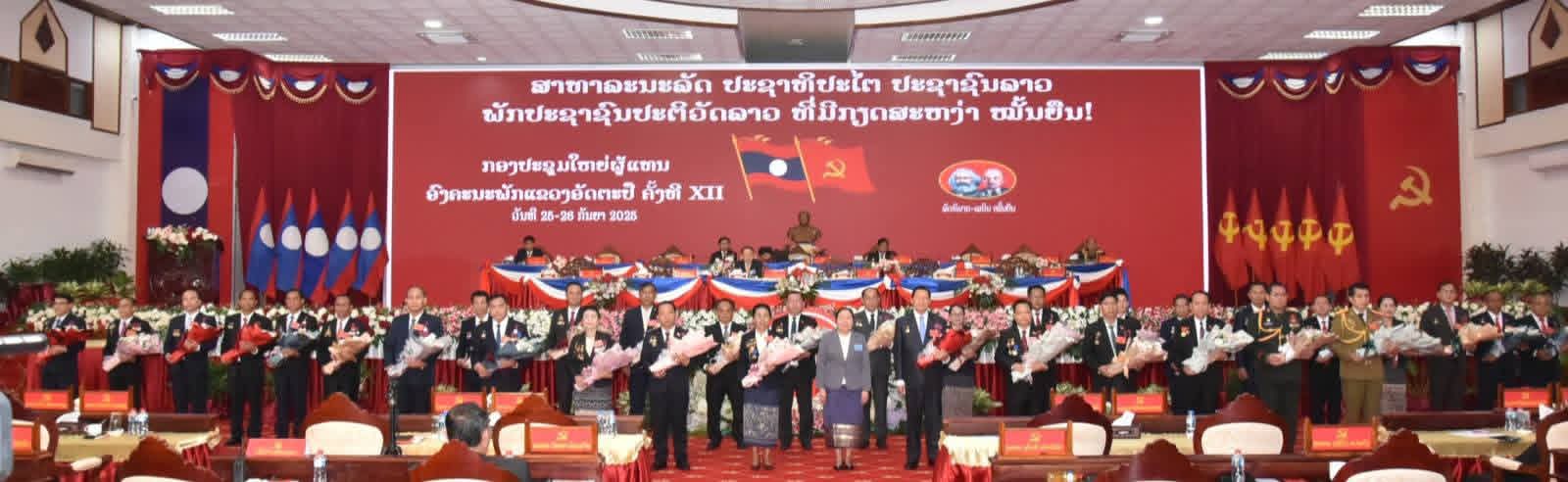 ກອງປະຊຸມໃຫຍ່ຜູ້ແທນ ອົງຄະນະພັກ ແຂວງອັດຕະປື ຄັ້ງທີ XII ໄດ້ສຳເລັດລົງຢ່າງຈົບງາມ ໃນວັນທີ 26 ກັນຍາ 2025 ພາຍຫຼັງດໍາເນີນມາເປັນເວລາ 2 ວັນ ທີ່ຫໍປະຊຸມໃຫຍ່ຂອງແຂວງ, ໂດຍການເປັນປະທານຂອງ ສະຫາຍ ພົທ ວັນທອງ ກອງມະນີ ກໍາມະການສູນກາງພັດ ເລຂາຄະນະບໍລິຫານງານພັກແຂວງ, ເຈົ້າແຂວງອັດຕະປື ເປັນກຽດເຂົ້າຮ່ວມຂອງ ສະຫາຍ ນາງ ສີໃສ ລືເດດມູນສອນ ກໍາມະການກົມການເມືອງສູນກາງພັກ, ຄະນະເລຂາທິການສູນກາງພັກ, ຫົວໜ້າຄະນະຈັດຕັ້ງສູນກາງພັກ, ມີຜູ້ແທນສົມບູນ, ພ້ອມດ້ວຍພະນັກງານປະຕິວັດອາວຸໂສບໍານານ ແລະ ແຂກທີ່ຖືກເຊີນເຂົ້າຮ່ວມ.