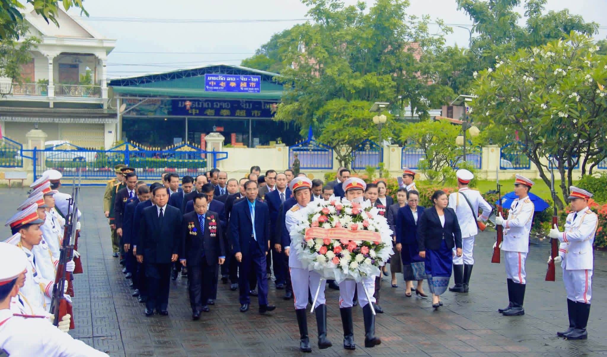 ຈາກນັ້ນ ຄະນະການນຳພັກ-ລັດ ຂອງແຂວງກໍ່ໄດ້ສືບຕໍ່ໄປວາງກະຕ່າດອກໄມ້ ຢູ່ຕໍ່ໜ້າອະສອນສະຖາ ປະທານ ໄກສອນ ພົມວິຫານ ອະດີດຜູ້ນຳທີ່ ແສນເຄົາລົບຮັກຂອງປວງຊົນລາວທັງຊາດ ເພື່ອສະແດງຄວາມກະຕັນຍູຮູ້ບຸນຄຸນ ຕໍ່ປະທານ ໄກສອນພົມວິຫານ ທີ່ໄດ້ສຸມສະຕິປັນຍາເຂົ້າໃນການນຳພາຂະບວນການຕໍ່ສູ້ຕ້ານການຮຸກຮານຂອງພວກຕ່າງດ້າວ ສາມາດຍາດໄດ້ໄຊຊະນະ ແລະ ນໍາເອົາຄວາມຢູ່ເຢັນເປັນສຸກມາສູ່ປະຊາຊົນ ລາວບັນດາເຜົ່າ, ຊຶ່ງຜົນງານ ແລະ ຄຸນງາມຄວາມດີຂອງທ່ານໄກສອນ ພົມວິຫານ ແມ່ນໄດ້ຈາລຶກໃນຄວາມຊົງຈຳຂອງປະຊາຊົນລາວບັນດາເຜົ່າຕະຫຼອດໄປ.