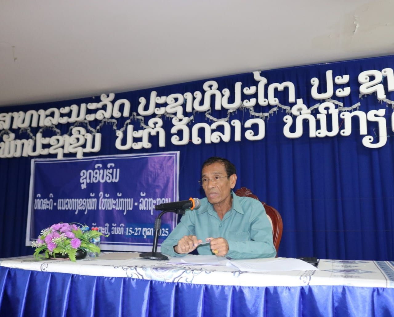 ພິທີປິດຊຸດອົບຮົມ ທິດສະດີ-ແນວທາງຂອງພັກ ໃຫ້ແກ່ສະມາຊິກພັກ, ພະນັກງານ-ລັດຖະກອນ ທົ່ວແຂວງອັດຕະປື ປະຈຳປີ 2025 ໄດ້ສຳເລັດລົງຢ່າງເປັນທາງການ ພາຍຫຼັງທີ່ໄດ້ດຳເນີນມາເປັນເວລາ 7 ວັນ ແຕ່ວັນທີ 15 ຕຸລາ – 23 ຕຸລາ 2025 ທີ່ຄະນະໂຄສະນາອົບຮົມແຂວງອັດຕະປື ໃຫ້ກຽດເຂົ້າຮ່ວມຂອງ ທ່ານ ຄຳບຸນ ດວງພະບາງ ຮອງເລຂາພັກແຂວງ, ມີວິທະຍາກອນ ແລະ ສຳມະນາກອນ ອ້ອມຂ້າງແຂວງ ແລະ ເມືອງ ເຂົ້າຮ່ວມ.